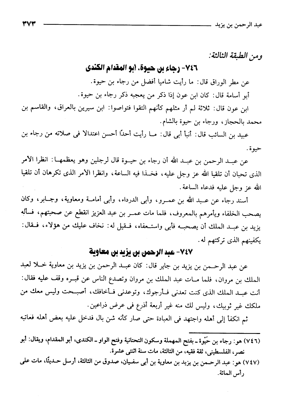 746 - هو: رجاء بن حيوة -بفتح المهملة وسكون التحتانية وفتح الواو - الكندي، أبو المقدام، ويقال: أبو نصر، الفلسطيني، ثقة فقيه، من الثالثة، مات سنة اثنتي عشرة.