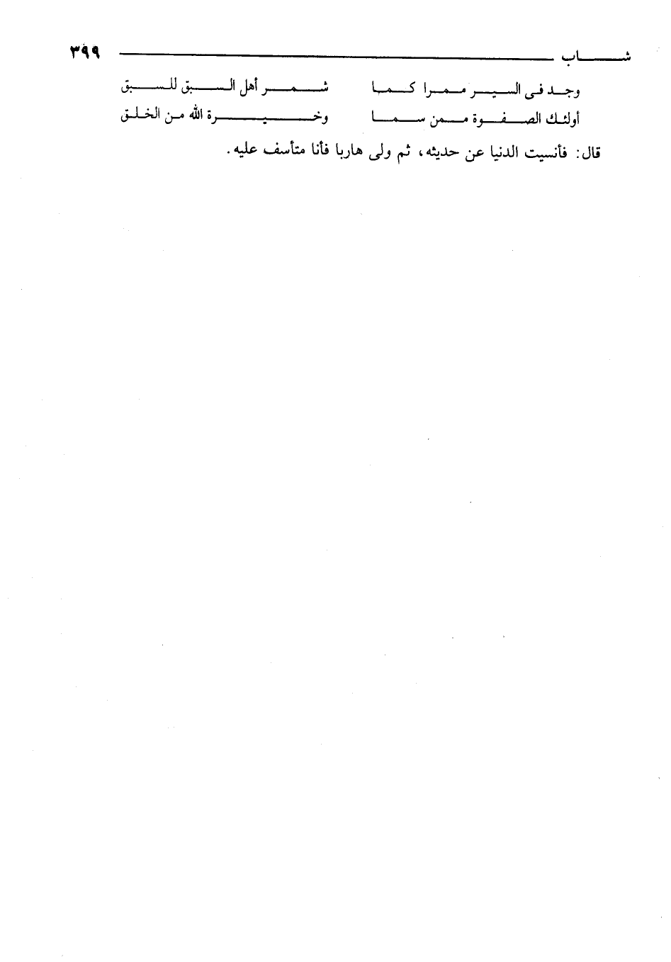 قال: فأنسيت الدنيا عند حديثه، ثم ولى هارباً فأنا متأسف عليه.