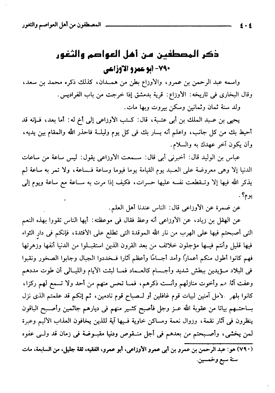 790 - هو: عبد الرحمن بن عمرو بن أبي عمرو الأوزاعي، أبو عمرو، الفقيه، ثقة جليل، من السابعة، مات سنة سبع وخمسين.
