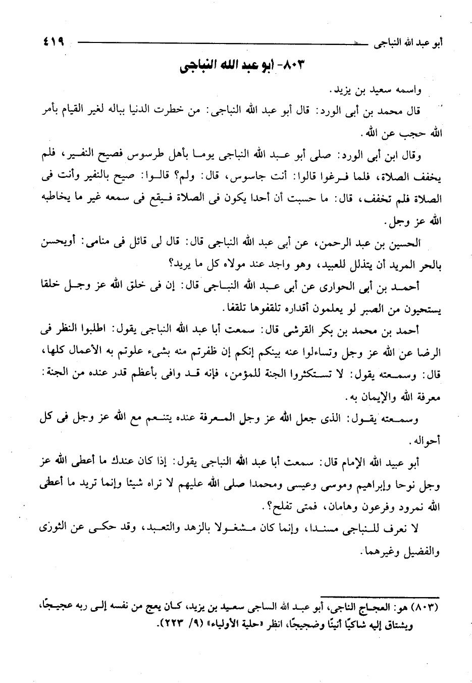 803 - هو: العجاج الناجي، أبو عبد الله الساجي سعيد بن يزيد، كان يعج من نفسه إلى ربه عجيجا، ويشتاق إليه شاكيا أنينا وضجيجا، انظر حلية الأولياء 9/223.