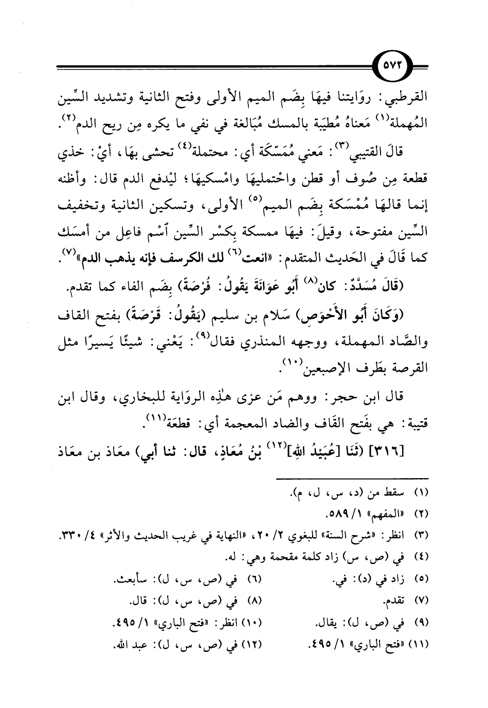 [316] (ثَنَا [عُبَيْدُ الله] (¬12) بْنُ مُعَاذٍ، قال: ثنا أبي) معَاذ بن معَاذ