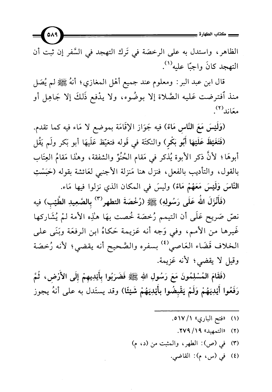 قال ابن عبد البر: ومعلوم عند جميع أهْل المغازي؛ أنهُ -صلى الله عليه وسلم- لم يُصَل منذ افترضت عَليه الصَّلاة إلا بوضوء، ولا يدْفع ذَلكَ إلا جَاهِل أو معَاند (¬2).