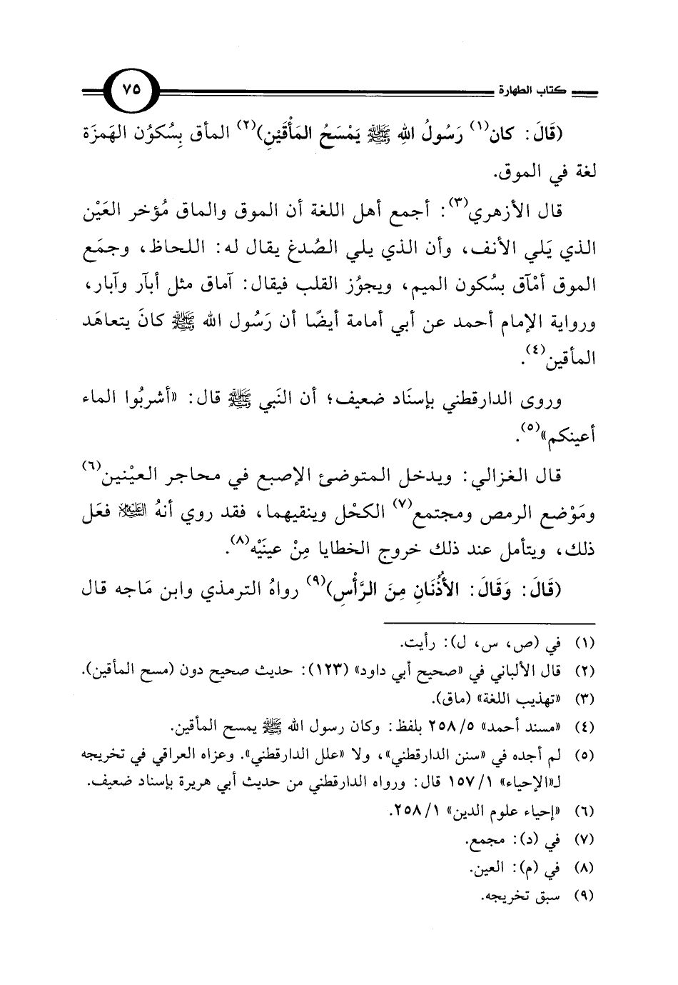 (¬4) "مسند أحمد" 5/ 258 بلفظ: وكان رسول الله -صلى الله عليه وسلم- يمسح المأقين.