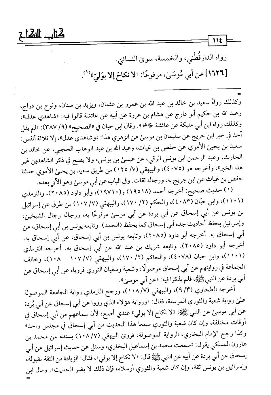 [1636] عن أبي مُوسَى، مرفوعًا: "لا نكاحَ إلا بوَليّ" (¬1)