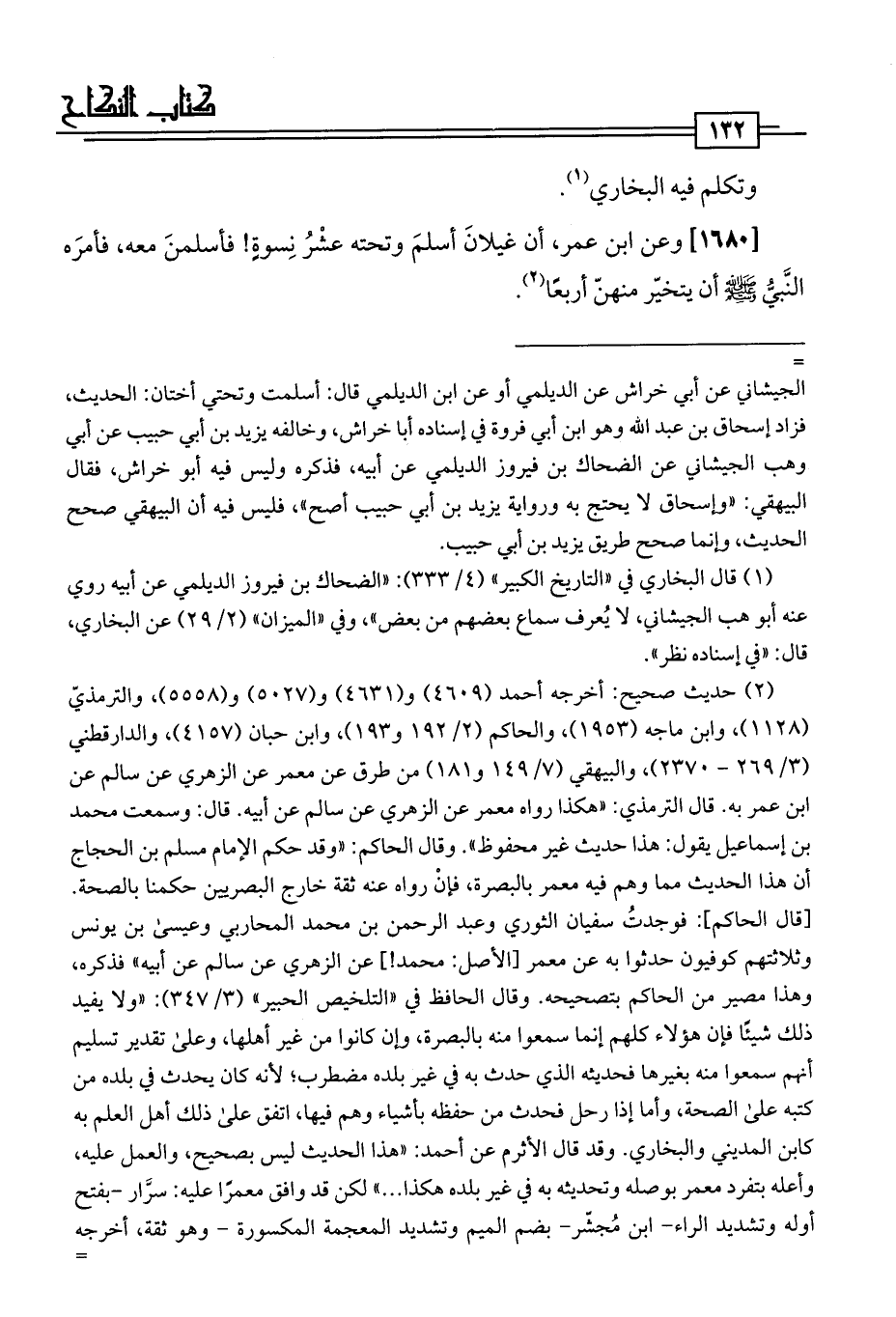 [1680] وعن ابن عمر، أن غيلانَ أسلمَ وتحته عشْرُ نِسوةٍ! فأسلمنَ معه، فأمرَه النَّبيُّ -صلى اللَّه عليه وسلم- أن يتخيّر منهنّ أربعًا (¬2).