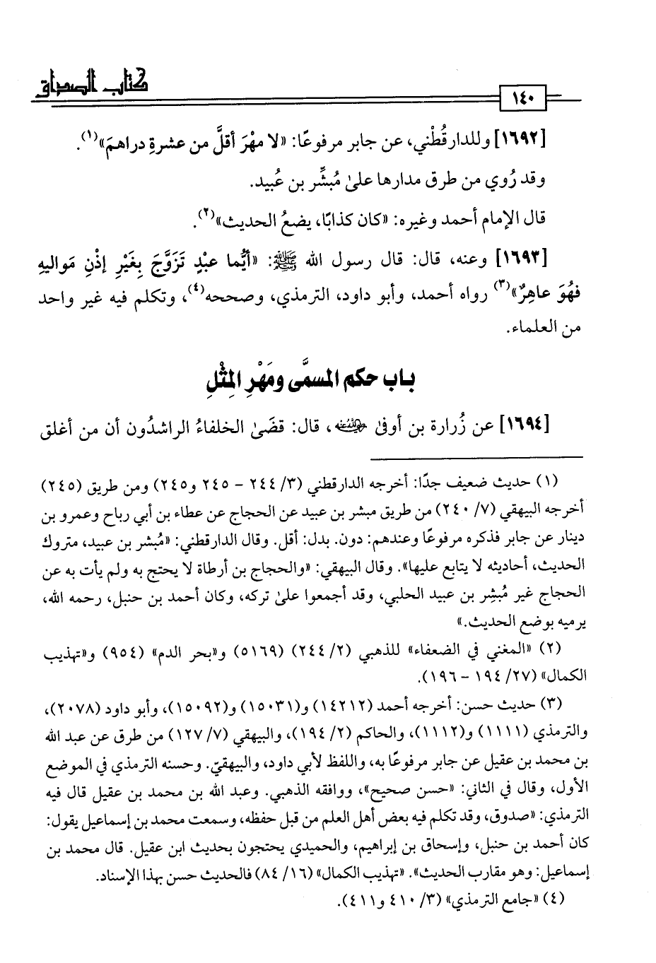 [1693] وعنه، قال: قال رسول اللَّه -صلى اللَّه عليه وسلم-: "أيُّما عبْدٍ تَزَوَّجَ بِغَيْرِ إذْنِ مَواليهِ فهُوَ عاهِرٌ" (¬3) رواه أحمد، وأبو داود، الترمذي، وصححه (¬4)، وتكلم فيه غير واحد من العلماء.