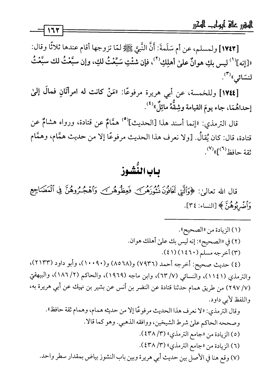 (¬7) وقع هنا في الأصل بين حديث أبي هريرة وبين باب النشوز بياض بمقدار سطر واحد.