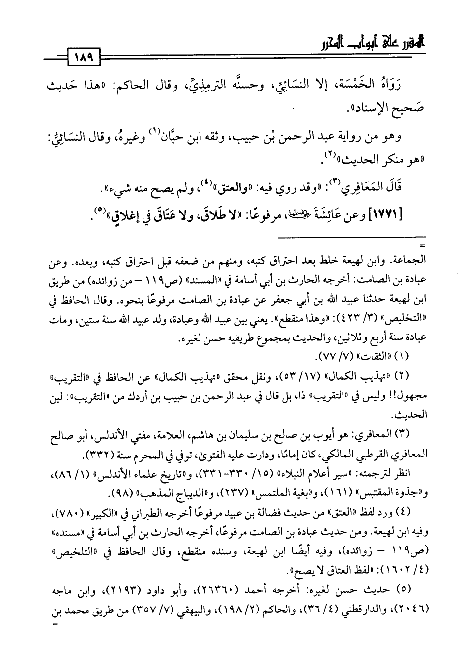 قَالَ المَعَافِري (¬3): "وقد روي فيه: "والعتق" (¬4)، ولم يصح منه شيء".