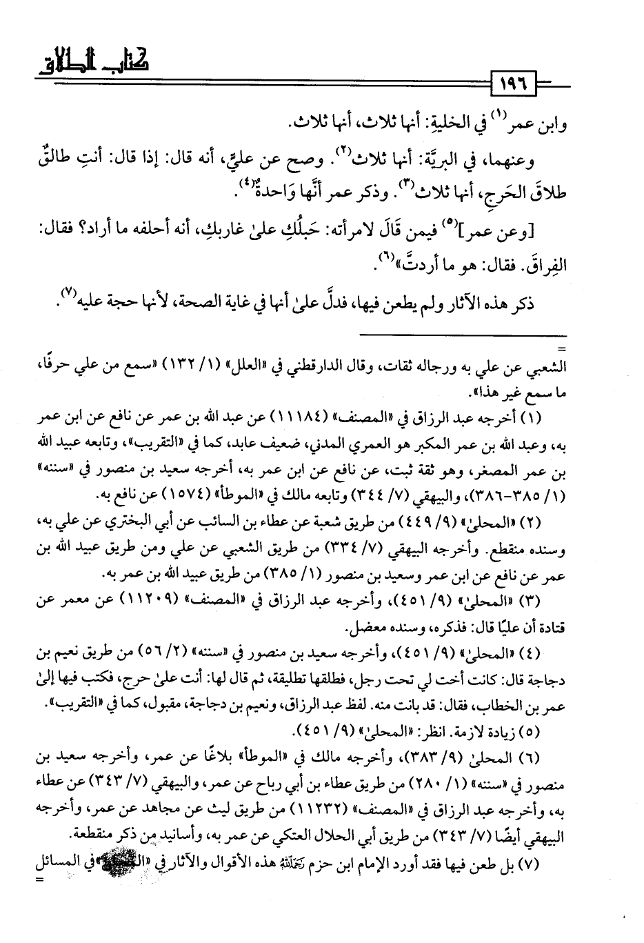 (¬4) "المحلى" (9/ 451)، وأخرجه سعيد بن منصور في "سننه" (2/ 56) من طريق نعيم بن دجاجة قال: كانت أخت لي تحت رجل، فطلقها تطليقة، ثم قال لها: أنت على حرج، فكتب فيها إلى عمر بن الخطاب، فقال: قد بانت منه. لفظ عبد الرزاق، ونعيم بن دجاجة، مقبول، كما في "التقريب".