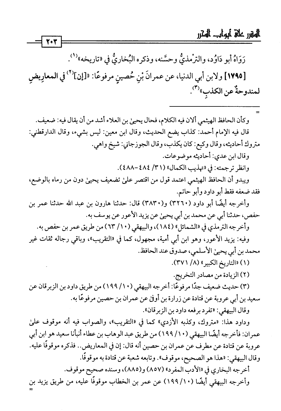 [1795] ولابن أبي الدنيا، عن عمرانَ بْنِ حُصينٍ مرفوعًا: " [إن] (¬2) في المعارِيضِ لمندوحةٌ عن الكذبِ" (¬3).