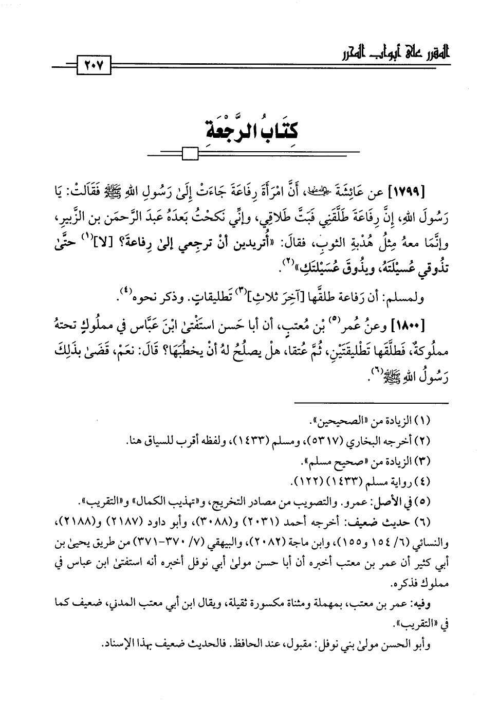 [1800] وعنُ عُمر (¬5) بن مُعتبٍ، أن أبا حَسن استَفْتى ابْنَ عَبَّاس في مملُوكٍ تحتهُ مملُوكةٌ، فَطلَّقَها تَطْليقَتَيْنِ، ثُمَّ عُتقا، هلْ يصلُحُ لهُ أنْ يخطُبَهَا؟ قَالَ: نعَمْ، قَضَى بذَلِكَ رَسُولُ اللَّهِ -صلى اللَّه عليه وسلم- (¬6).