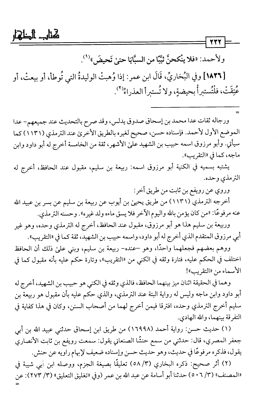 (¬1) حديث حسن: رواية أحمد (16998) من طريق ابن إسحاق حدثني عبيد اللَّه بن أبي جعفر المصري، قال: حدثني من سمع حنشًا الصنعاني يقول: سمعت رويفع بن ثابت الأنصاري يقول، فذكره مرفوعًا في حديث، وهو حديث حسن وإسناده ضعيف لإبهام راويه عن حنش.