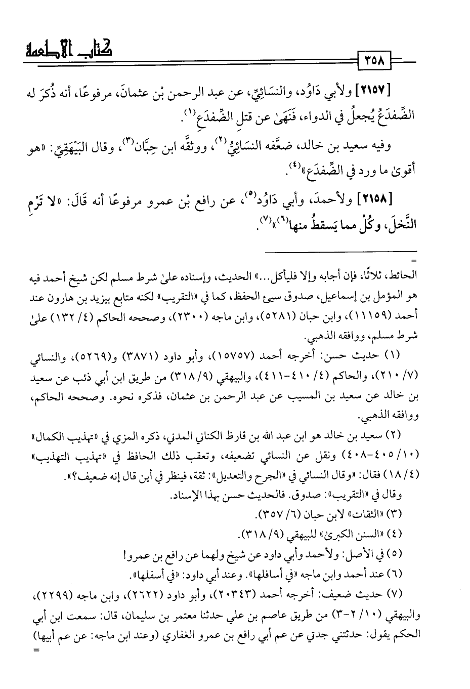 وفيه سعيد بن خالد، ضعَّفه النسَائِيُّ (¬2)، ووثقَه ابن حِبَّان (¬3)، وقال البَيْهَقِيِّ: "هو أقوى ما ورد في الضّفدَع" (¬4).