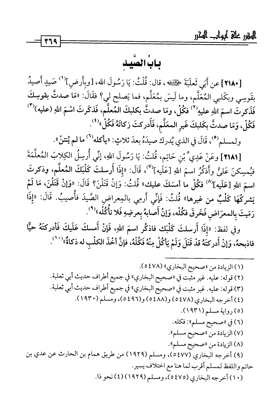 (¬9) أخرجه البخاري (5477)، ومسلم (1929) من طريق همام بن الحارث عن عدي بن حاتم واللفظ لمسلم أقرب لما هنا مع اختلاف يسير.