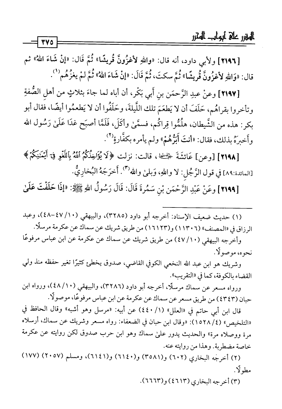 [2199] وعَنْ عَبْدِ الرَّحْمَن بْنِ سَمُرةَ قَالَ: قَالَ رَسُولُ اللَّهِ -صلى اللَّه عليه وسلم-: "إذَا حَلَفْتَ عَلَى