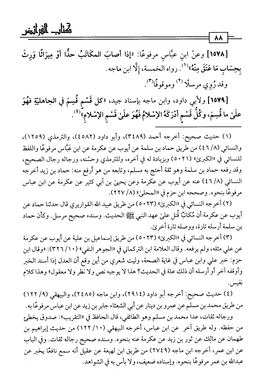 [1579] ولأبي داود، وابن ماجه بإسناد جيد، "كل قَسْمٍ قُسِمَ في الجاهليّةِ فهُوَ علَى ما قُسِمَ، وكُلُّ قَسْمٍ أدْرَكَهُ الإسْلامُ فَهُوَ علَى قَسْمِ الإِسْلامِ" (¬4).