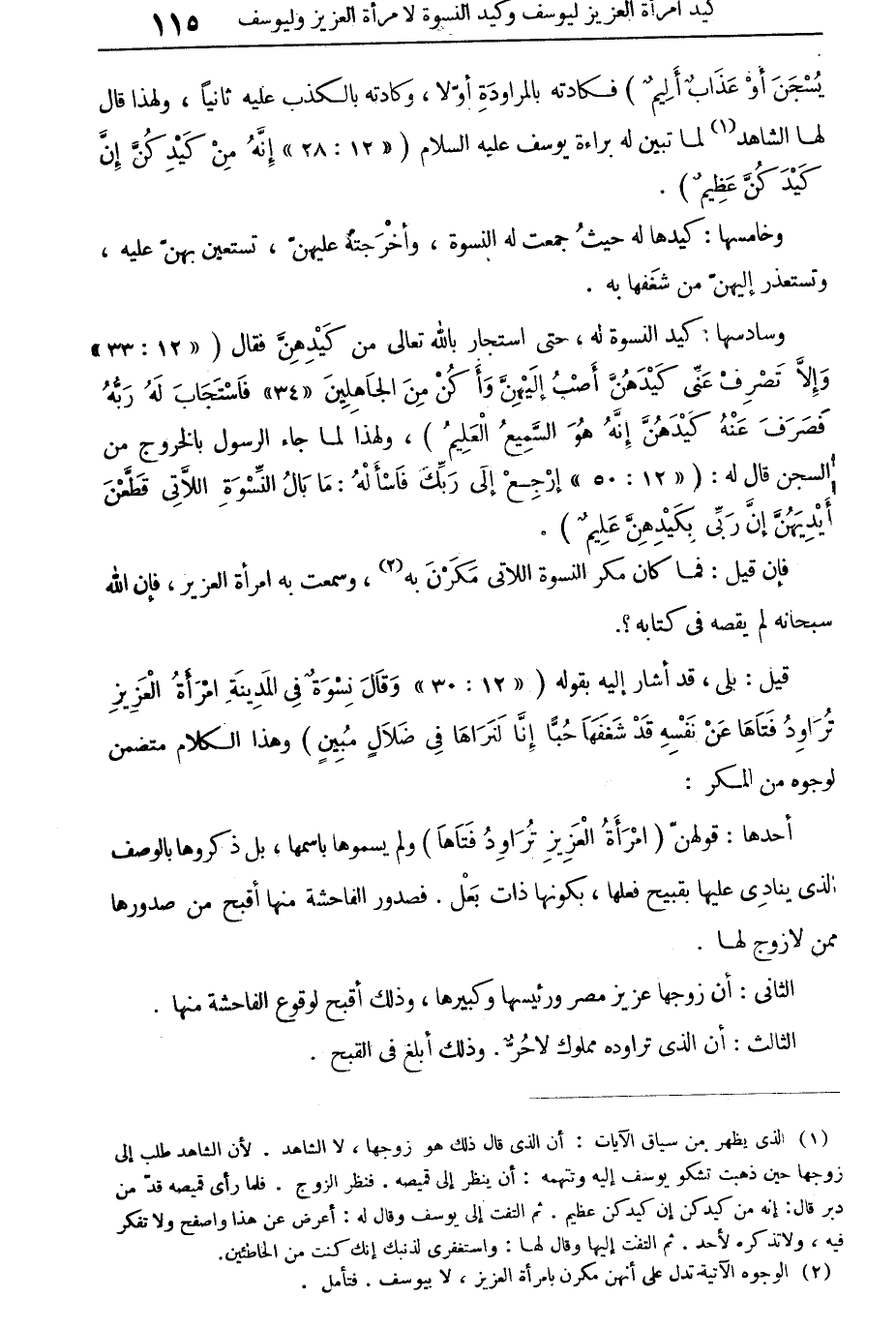 قيل: بلى، قد أشار إليه بقوله: {وَقَالَ نِسْوَةٌ فِى المَدينَةِ اُمْرَأَةُ الْعَزِيزِ تُراوِدُ فَتَاهَا عَنْ نَفْسِهِ قَدْ شَغَفَهَا حُبا إِنَّا لَنَرَاهَا فِى ضَلاَلٍ مُبِينٍ} [يوسف: 30] .
