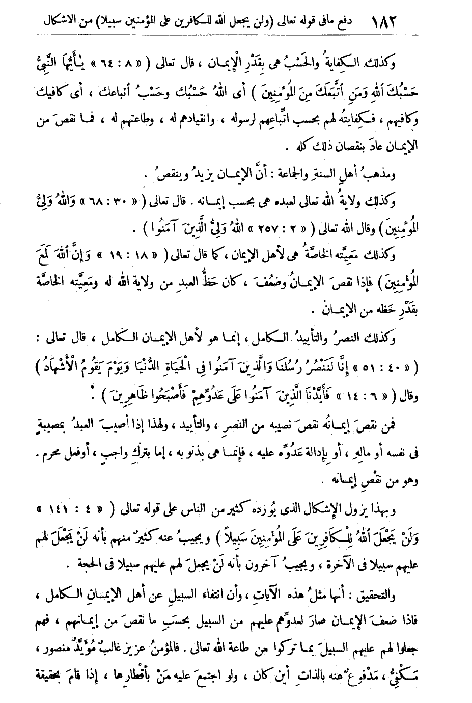 وبهذا يزول الإشكال الذى يورده كثير من الناس على قوله تعالى: {وَلَنْ يَجْعَلَ اللهُ لِلْكَافِرِينَ عَلَى المُؤْمِنِينَ سَبِيلاً} [النساء: 141] .