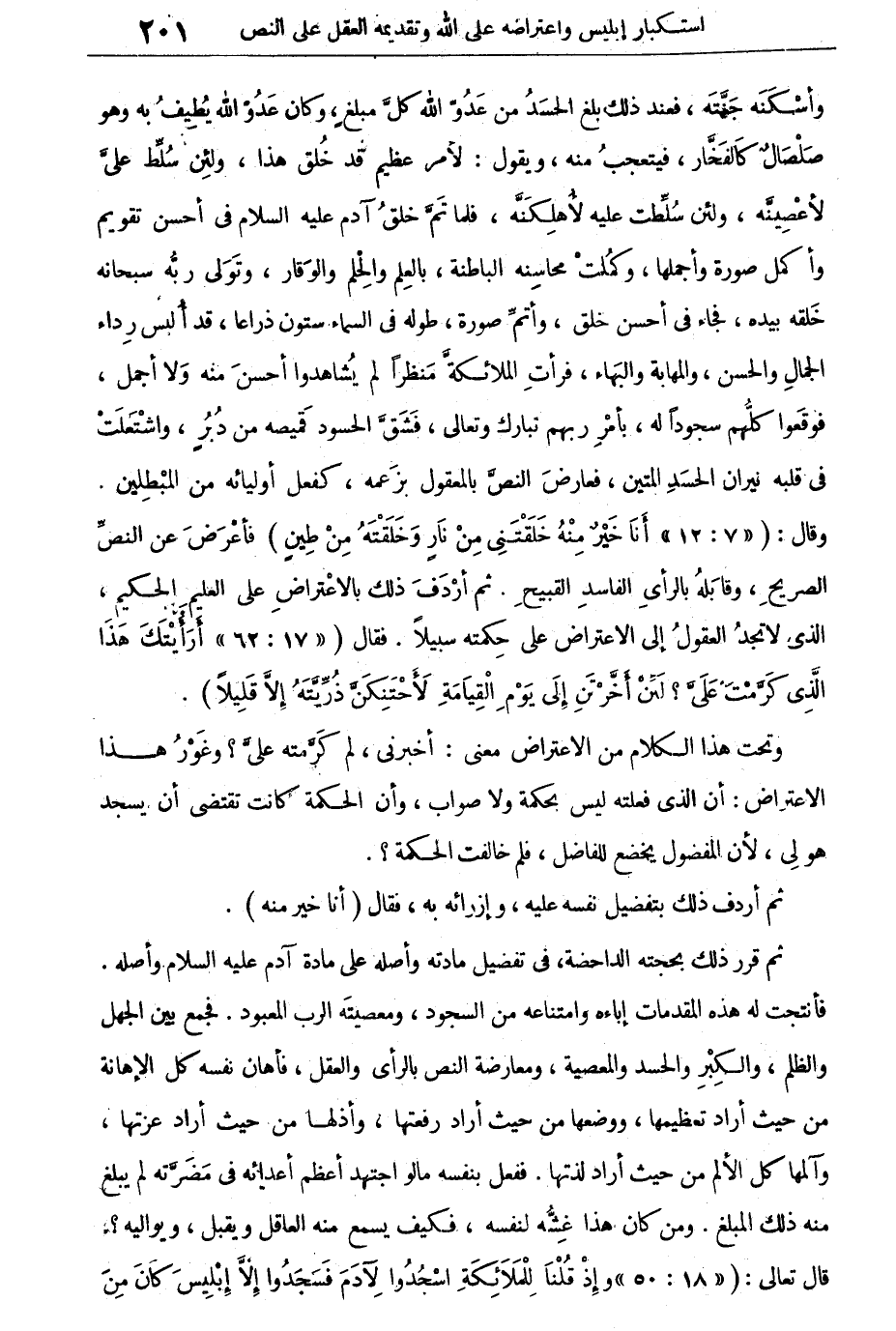 فأعرض عن النص الصريح، وقابله بالرأى الفاسد القبيح. ثم أردف ذلك بالاعتراض على العليم الحكيم، الذى لا تجد العقول إلى الاعتراض على حكمته سبيلا. فقال: