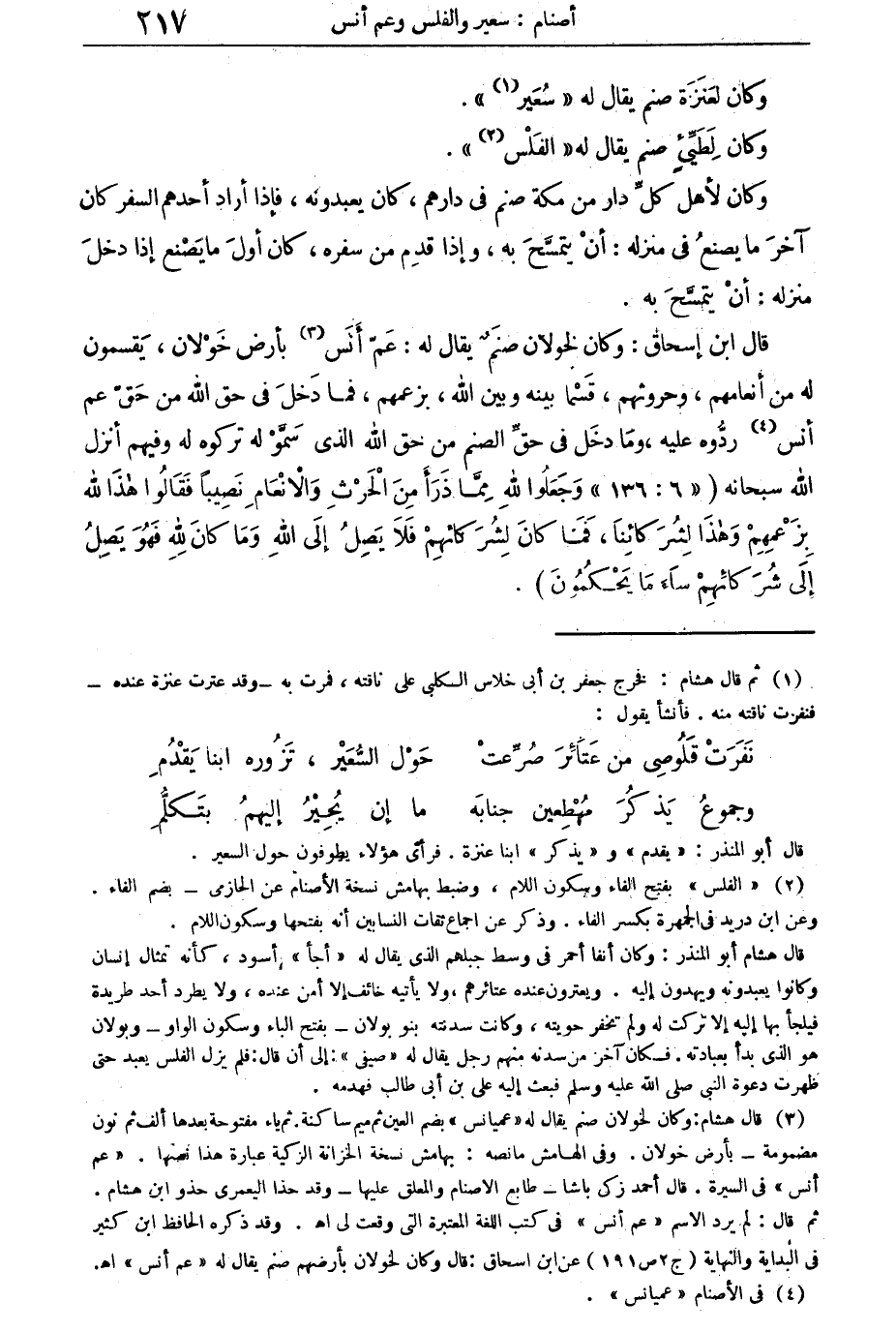 قال ابن إسحاق: وكان لخولان صنم يقال له: عم أنس بأرض خولان يقسمون له من أنعامهم، وحروثهم، قسما بينه وبين الله، بزعمهم، فما دخل فى حق الله من حق عم أنس رده عليه، وما دخل فى الحق الصنم من حق الله الذى سموا له تركوه له وفيهم أنزل الله سبحانه: