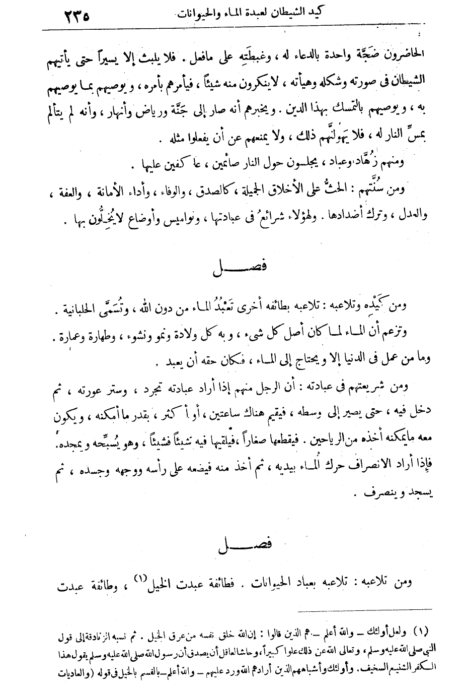 ومن كيده وتلاعبه: تلاعبه بطائفة أخرى تعبد الماء من دون الله، وتسمى الحلبانية.