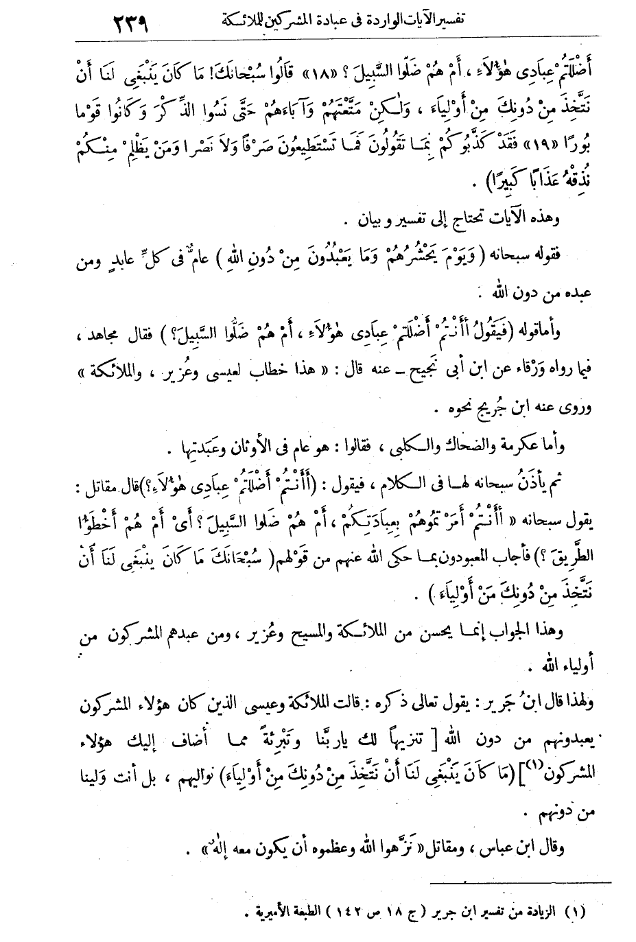 أَضْلَلْتُمْ عِبَادِى هؤْلاءِ، أَمْ هُمْ ضَلُّوا السَّبِيلَ قَالُوا سُبْحَانَكَ مَا كَانَ يَنْبَغِى لَنَا أَنْ نَتَّخِذَ مِنَ دُونِكَ مِن أولياء، وَلكِنْ مَتَّعْتَهُمْ وَآبَاءهُمْ حَتَّى نَسُوا الذِّكُرَ وَكانُوا قَوْماً بُورًا فَقدْ كَذَّبُوكُمْ بَما تَقُولُونَ فَما تَسْتَطِيعُونَ صَرْفاَ وَلا نَصْراً. وَمَنْ يَظْلِمْ مِنْكُمْ نُذِقْهُ عَذَاباً كَبِيراً} [الفرقان: 17- 19] .