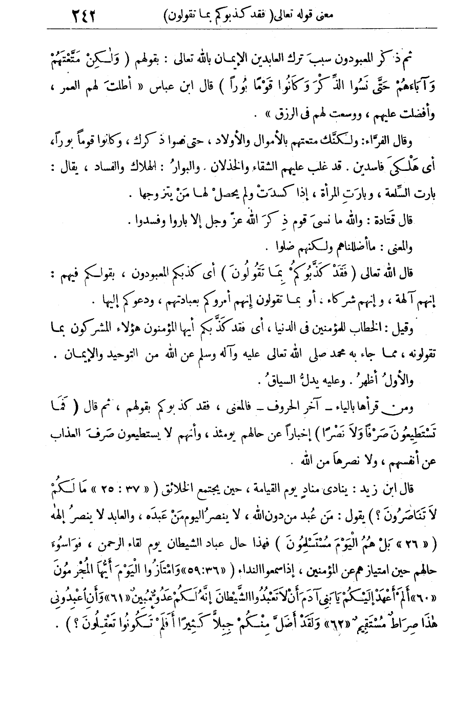 قال الله تعالى {فَقَدْ كَذَّبُوكُمْ بَما تَقُولْونَ} [الفرقان: 19] .