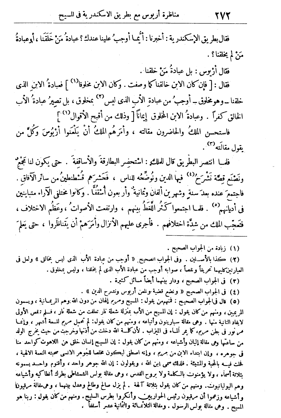 فقال أريوس: بل عبادة من خلقنا.