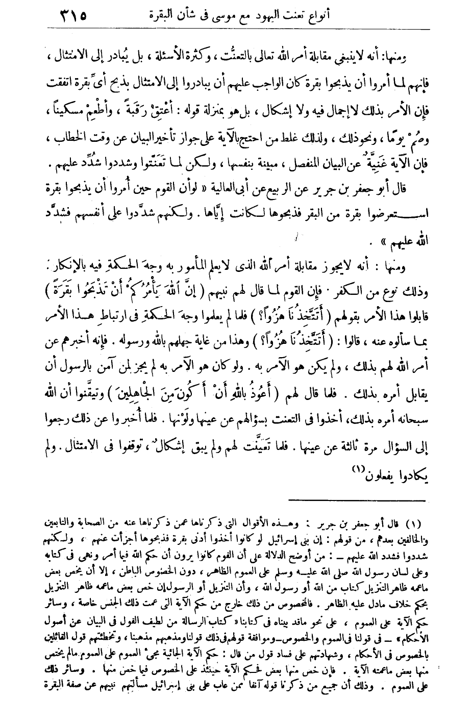 قال أبو جعفر بن جرير عن الربيع عن أبى العالية "لو أن القوم حين أمروا أن يذبحوا بقرة استعرضوا بقرة من البقر فذبحوها لكانت إياها. ولكنهم شددوا على أنفسهم فشدد الله عليهم".
