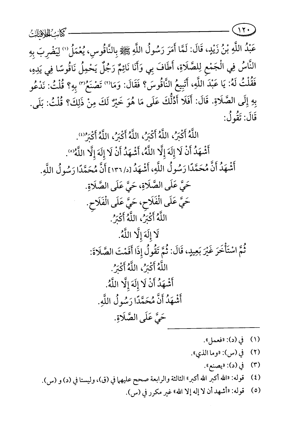 عَبْدُ اللَّهِ بْنُ زَيْدٍ، قَالَ: لَمَّا أَمَرَ رَسُولُ اللَّهِ - صلى الله عليه وسلم - بِالنَّاقُوسِ، يُعْمَلُ (¬1) لِيَضْرِبَ بِهِ النَّاسُ فِي الْجَمْعِ لِلصَّلَاةِ، أَطَافَ بِي وَأَنَا نَائِمٌ رَجُلٌ يَحْمِلُ نَاقُوسًا فِي يَدِهِ، فَقُلْتُ لَهُ: يَا عَبْدَ اللَّهِ، أَتَبِيعُ النَّاقُوسَ؟ فَقَالَ: وَمَا (¬2) تَصْنَعُ (¬3) بِهِ؟ قُلْتُ: نَدْعُو بِهِ إِلَى الصَّلَاةِ. قَالَ: أَفَلَا أَدُلُّكَ عَلَى مَا هُوَ خَيرٌ لَكَ مِنْ ذَلِكَ؟ قُلْتُ: بَلَى. قَالَ: تَقُولُ: