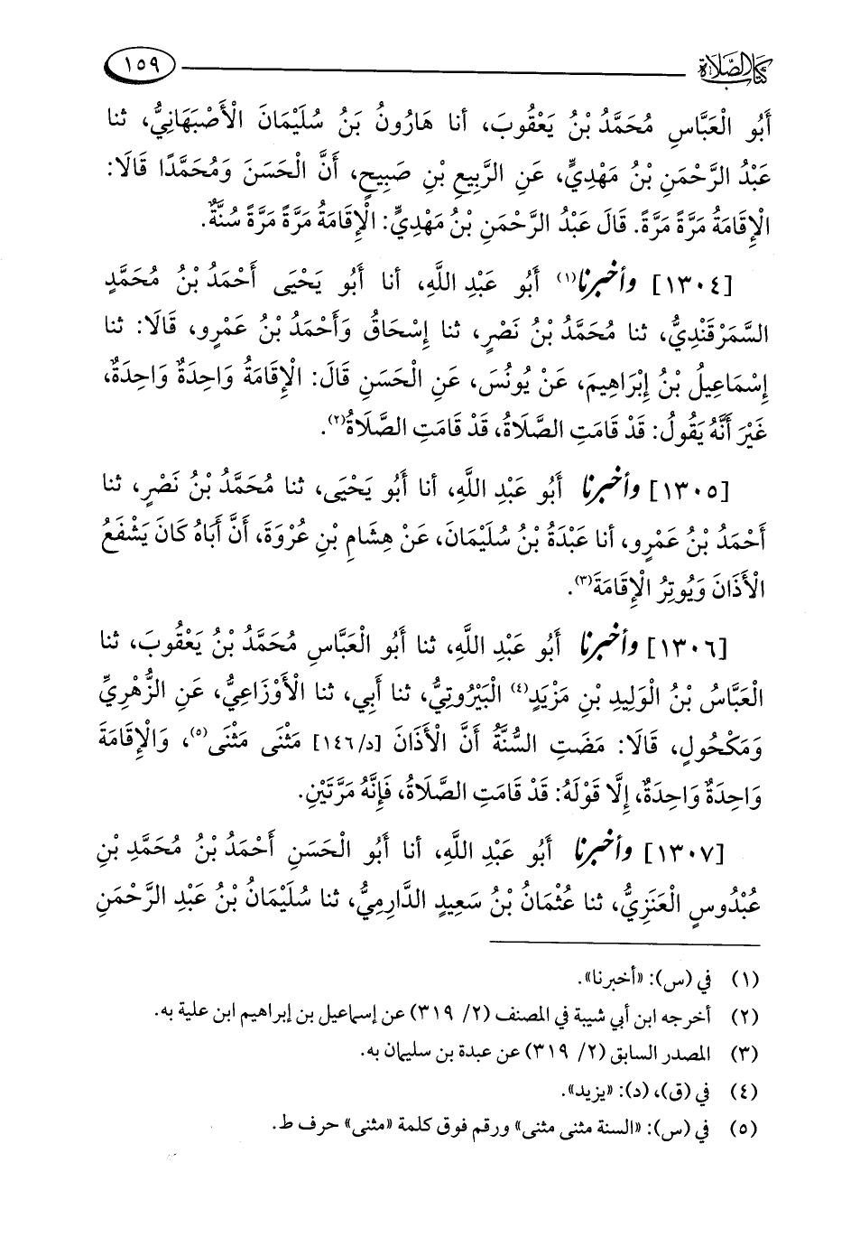 [1305] وأخبرنا أَبُو عَبْدِ اللَّهِ، أنا أَبُو يَحْيَى، ثنا مُحَمَّدُ بْنُ نَصْرٍ، ثنا أَحْمَدُ بْنُ عَمْرٍو، أنا عَبْدَةُ بْنُ سُلَيْمَانَ، عَنْ هِشَامِ بْنِ عُرْوَةَ، أَنَّ أَبَاهُ كَانَ يَشْفَعُ الْأَذَانَ وَيُوتِرُ الْإِقَامَةَ (¬3).