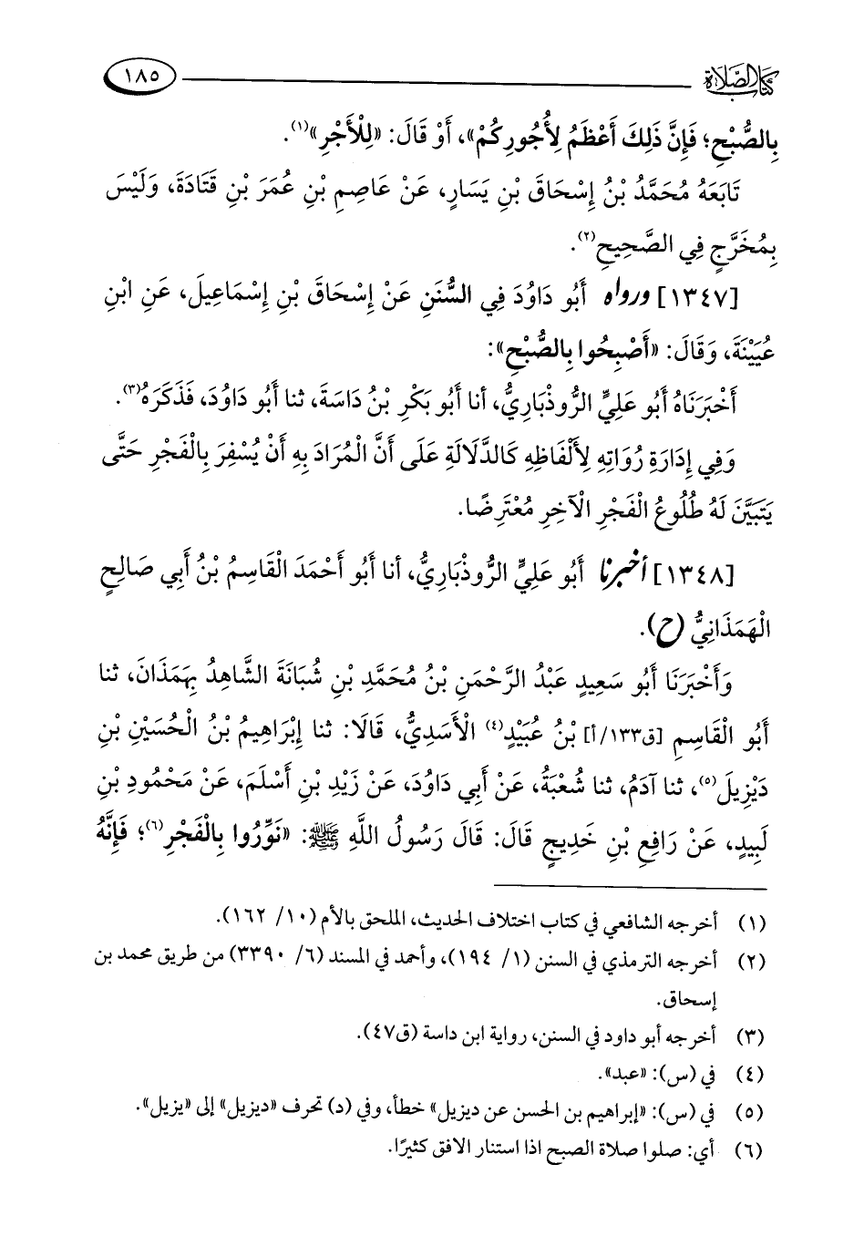 [1347] ورواه أَبُو دَاوُدَ فِي السُّنَنِ عَنْ إِسْحَاقَ بْنِ إِسْمَاعِيلَ، عَنِ ابْنِ عُيَيْنَةَ، وَقَالَ: "أَصْبِحُوا بِالصُّبْحِ":