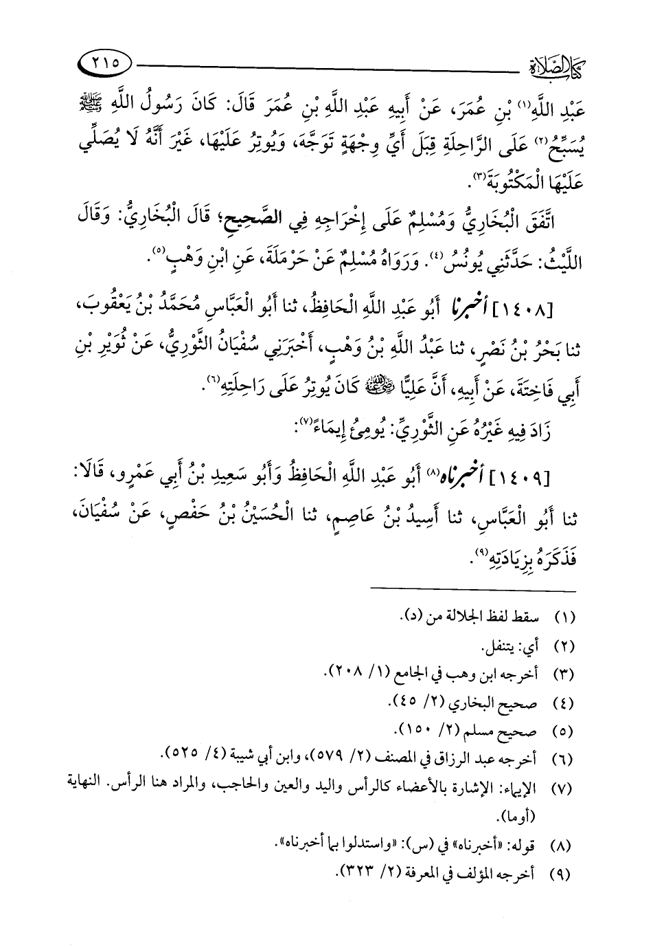[1408] أخبرنا أَبُو عَبْدِ اللَّهِ الْحَافِظُ، ثنا أَبُو الْعَبَّاسِ مُحَمَّدُ بْنُ يَعْقُوبَ، ثنا بَحْرُ بْنُ نَصْرٍ، ثنا عَبْدُ اللَّهِ بْنُ وَهْبٍ، أَخْبَرَنِي سُفْيَانُ الثَّوْرِيُّ، عَنْ ثُوَيْرِ بْنِ أَبِي فَاخِتَةَ، عَنْ أَبِيهِ، أَنَّ عَلِيًّا - رضي الله عنه - كَانَ يُوتِرُ عَلَى رَاحِلَتِهِ (¬6).