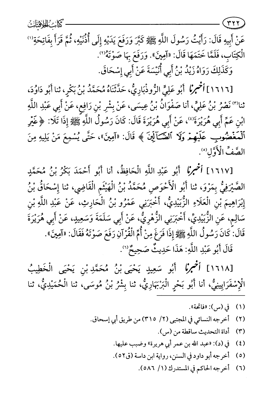 [1617] أخبرنا أَبُو عَبْدِ اللَّهِ الْحَافِظُ، أنا أَبُو أَحْمَدَ بَكْرُ بْنُ مُحَمَّدٍ الصَّيْرَفِيُّ بِمَرْوَ، ثنا أَبُو الْأَحْوَصِ مُحَمَّدُ بْنُ الْهَيْثمِ الْقَاضِي، ثنا إِسْحَاقُ بْنُ إِبْرَاهِيمَ بْنِ الْعَلَاءِ الزُّبَيْدِيُّ، أَخْبَرَنِي عَمْرُو بْنُ الْحَارِثِ، عَنْ عَبْدِ اللَّهِ بْنِ سَالِمٍ، عَنِ الزُّبَيْدِيِّ، أَخْبَرَنِي الزُّهْرِيُّ، عَنْ أَبِي سَلَمَةَ وَسَعِيدٍ، عَنْ أَبِي هُرَيْرَةَ قَالَ: كَانَ رَسُولُ اللَّهِ - صلى الله عليه وسلم - إذَا فَرَغَ مِنْ أُمِّ الْقُرآنِ رَفَعَ صَوْتَهُ فَقَالَ: "آمِينَ".
