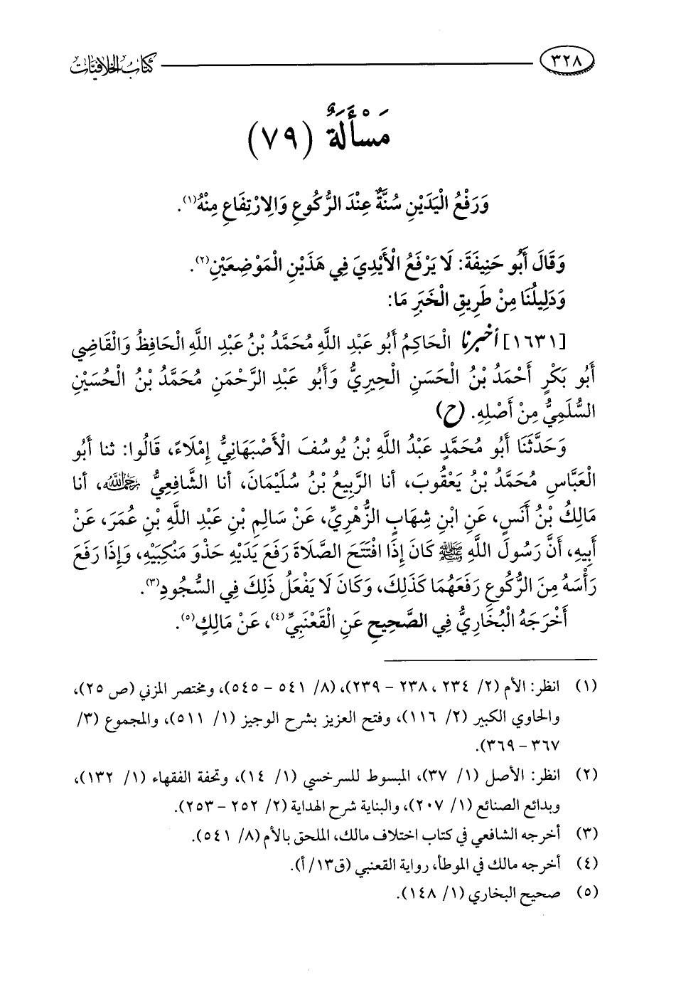 مَسْأَلَةٌ (79): وَرَفْعُ الْيَدَيْنِ سُنَّةٌ عِنْدَ الرُّكُوعِ وَالِارْتِفَاعِ مِنْهُ (¬1).