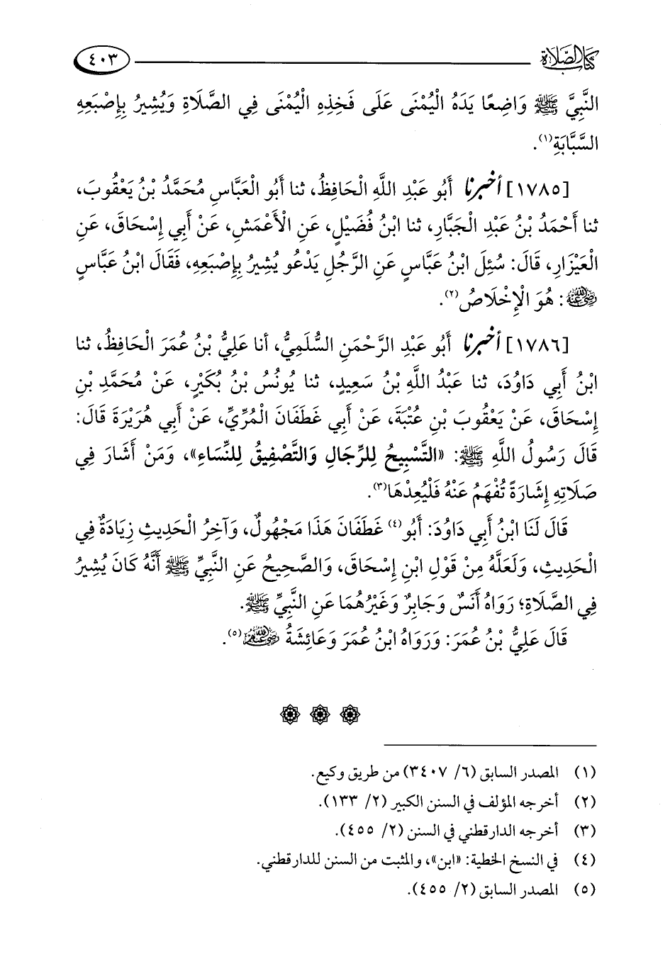 [1786] أخبرنا أَبُو عَبْدِ الرَّحْمَنِ السُّلَمِيُّ، أنا عَلِيُّ بْنُ عُمَرَ الْحَافِظُ، ثنا ابْنُ أَبِي دَاوُدَ، ثنا عَبْدُ اللَّهِ بْنُ سَعِيدٍ، ثنا يُونُسُ بْنُ بُكَيْرٍ، عَنْ مُحَمَّدِ بْنِ إِسْحَاقَ، عَنْ يَعْقُوبَ بْنِ عُتْبَةَ، عَنْ أَبِي غَطَفَانَ الْمُرِّيِّ، عَنْ أَبِي هُرَيْرَةَ قَالَ: قَالَ رَسُولُ اللَّهِ - صلى الله عليه وسلم -: "التَّسْبِيحُ لِلرِّجَالِ وَالتَّصْفِيقُ لِلنِّسَاءِ"، وَمَنْ أَشَارَ فِي صَلَاتِهِ إِشَارَةً تُفْهَمُ عَنْهُ فَلْيُعِدْهَا (¬3).