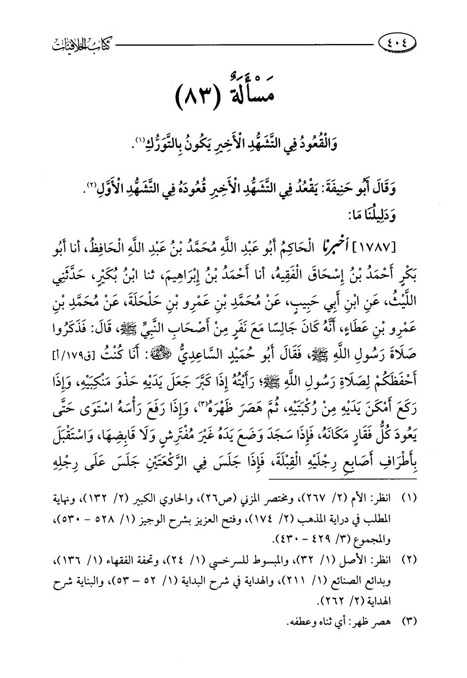 مَسْأَلَةٌ (83): وَالْقُعُودُ فِي التَّشَهُّدِ الْأَخِيِر يَكُونُ بِالتَّوَرُّكِ (¬1).
