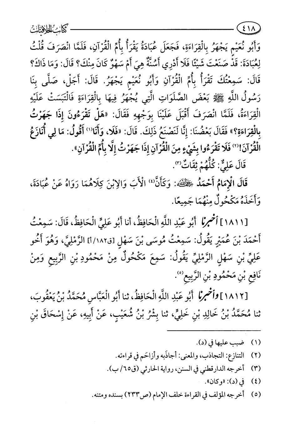 (¬5) أخرجه المؤلف في القراءة خلف الإمام (ص 233) بسنده ومتنه.