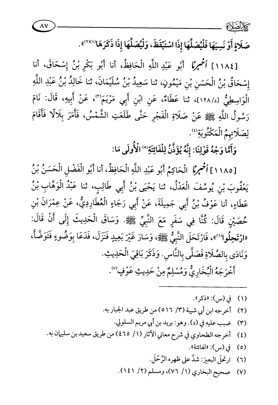 [1185] أخبرنا الْحَاكِمُ أَبُو عَبْدِ اللَّهِ الْحَافِظُ، أنا أَبُو الْفَضْلِ الْحَسَنُ بْنُ يَعْقُوبَ بْنِ يُوسُفَ الْعَدْلُ، ثنا يَحْيَى بْنُ أَبِي طَالِبٍ، ثنا عَبْدُ الْوَهَّابِ بْنُ عَطَاءٍ، أنا عَوْفُ بْنُ أَبِي جَمِيلَةَ، عَنْ أَبِي رَجَاءٍ الْعُطَارِدِيُّ، عَنْ عِمْرَانَ بْنِ حُصَيْنٍ قَالَ: كُنَّا فِي سَفَرٍ مَعَ النَّبِيِّ - صلى الله عليه وسلم -. وَسَاقَ الْحَدِيثَ إِلَى أَنْ قَالَ: "ارْتَحِلُوا (¬6) "، فَارْتَحَلَ النَّبِيُّ - صلى الله عليه وسلم -، وَسَارَ غَيْرَ بَعِيدٍ فَنَزَلَ، فَدَعَا بِوَضُوءٍ فَتَوَضَّأَ، وَنَادَى بِالصَّلَاةِ فَصَلَّى بِالنَّاسِ. وَذَكَرَ بَاقِيَ الْحَدِيثِ.