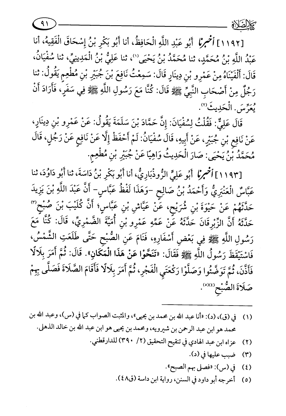 [1192] أخبرنا أَبُو عَبْدِ اللَّهِ الْحَافِظُ، أنا أَبُو بَكْرِ بْنُ إِسْحَاقَ الْفَقِيهُ، أنا عَبْدُ اللَّهِ بْنُ مُحَمَّدٍ، ثنا مُحَمَّدُ بْنُ يَحْيَى (¬1)، ثنا عَلِيُّ بْنُ الْمَدِينِيِّ، ثنا سُفْيَانُ، قَالَ: أَلْفَيْنَاهُ مِنْ عَمْرِو بْنِ دِينَارٍ قَالَ: سَمِعْتُ نَافِعَ بْنَ جُبَيْرِ بْنِ مُطْعِمٍ يَقُولُ: ثنا رَجُلٌ مِنْ أَصْحَابِ النَّبِيِّ - صلى الله عليه وسلم - قَالَ: كُنَّا مَعَ رَسُولِ اللَّهِ - صلى الله عليه وسلم - فِي سَفَرٍ، فَأَرَادَ أَنْ يُعَرِّسَ. الْحَدِيثَ (¬2).