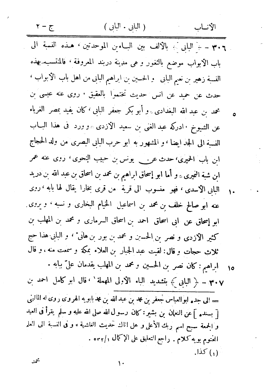بالألف بين الباءين الموحدتين، هذه النسبة الى باب الأبواب موضع بالثغور وهي مدينة دربند المعروفة، فالمنتسب بهذه النسبة زهير بن نعيم البابي والحسين بن إبراهيم البابي من أهل باب الأبواب، حدث عن حميد عن انس حديث تختموا بالعقيق، روى عنه عيسى بن محمد بن عبد الله البغدادي وأبو بكر جعفر البابي، كان يفيد بمصر الغرباء عن الشيوخ، أدركه عبد الغنى بن سعيد الأزدي وورد في هذا الباب النسبة الى الجد أيضا، والمشهور به ابو حرب البابي البصري من ولد الحجاج ابن باب الحميري، حدث عن يونس بن حبيب النحويّ، روى عنه عمر ابن شبة النميري وأما ابو إسحاق إبراهيم بن محمد بن إسحاق بن عبد الله بن دريد البابي الأسدي، فهو منسوب الى قرية من قرى بخارا يقال لها بابه، روى عنه ابو صالح خلف بن محمد بن إسماعيل الخيام البخاري ونسبه، ويروى ابو إسحاق عن ابى إسحاق احمد بن إسحاق السرمارى ومحمد بن المهلب بن كثير الأزدي ونصر بن الحسين ومحمد بن بور بن هانئ، والبابي هذا حج ثلاث حجات وقال: لقيت عبد الجبار بن العلاء بمكة وسمعت منه، وقال إبراهيم: كان نصر بن الحسين ومحمد بن المهلب يقدمان عليّ ببابه.