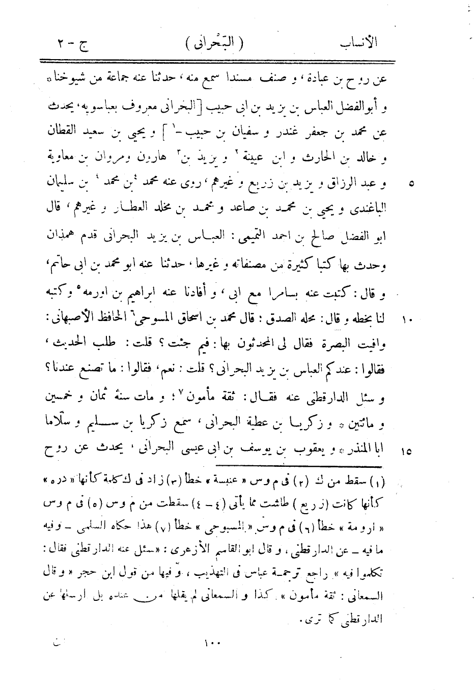 عن روح بن عبادة، وصنف مسندا سمع منه، حدثنا عنه جماعة من شيوخنا وأبو الفضل العباس بن يزيد بن ابى حبيب [البحراني معروف بعباسويه، يحدث عن محمد بن جعفر غندر وسفيان بن حبيب-[1]] ويحيى بن سعيد القطان وخالد بن الحارث وابن عيينة [2] ويزيد بن [3] هارون ومروان بن معاوية وعبد الرزاق ويزيد بن زريع وغيرهم، روى عنه محمد [4] بن محمد [4] بن سليمان الباغندي ويحيى بن محمد بن صاعد ومحمد بن مخلد العطار وغيرهم، قال ابو الفضل صالح بن احمد التميمي: العباس بن يزيد البحراني قدم همذان وحدث بها كتبا كثيرة من مصنفاته وغيرها، حدثنا عنه ابو محمد بن ابى حاتم، وقال: كتبت عنه بسامراء مع ابى، وأفادنا عنه إبراهيم بن اورمه [5] وكتبه لنا بخطه وقال: محله الصدق، قال محمد بن إسحاق المسوحي [6] الحافظ الأصبهاني: