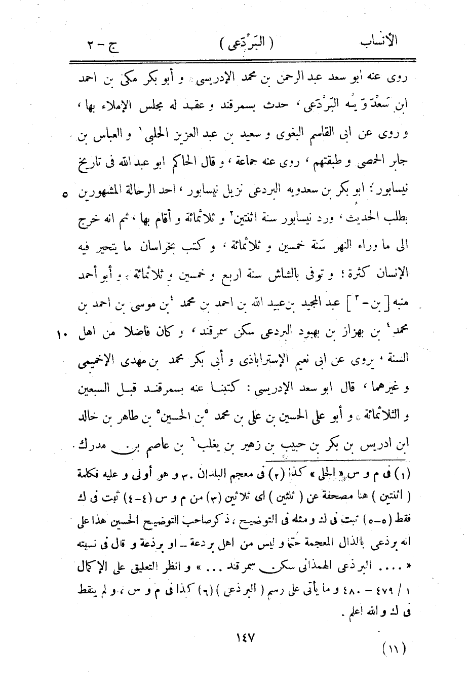 [5- 5] ثبت في ك ومثله في التوضيح، ذكر صاحب التوضيح الحسين هذا على انه برذعى بالذال المعجمة حتما وليس من أهل بردعة- أو برذعة وقال في نسبته « ... البرذعي الهمذانيّ سكن سمرقند ... » وانظر التعليق على الإكمال 1/ 479- 480 وما يأتى على رسم (البرذعي)