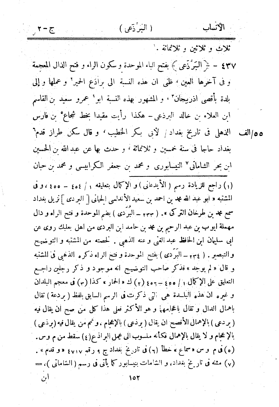 [3] في معجم البلدان وغيره ان هذه البلدة هي التي ذكرت في الرسم السابق بلفظ (بردعة) تقال بإهمال الدال وتقال بإعجامهما وهو الأكثر فعلى هذا كل من صح ان يقال فيه (بردعى) بالإهمال الأفصح ان يقال (برذعى) بالإعجام، وثم من يقال فيه (برذعى) بالإعجام ولا يقال بالإهمال فكأنه منسوب الى عمل البراذع