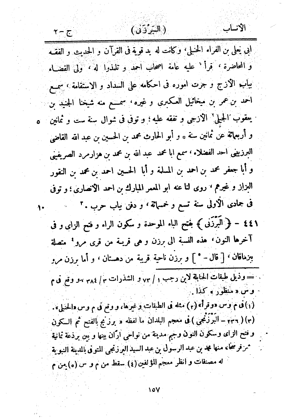 [3] (236- البَرزَنجى) في معجم البلدان ما لفظه «برزنج بالفتح ثم السكون وفتح الزاى وسكون النون وجيم مدينة من نواحي ارّان بينها وبين برذعة ثمانية عشر فرسخا» منها محمد بن عبد الرسول بن عبد السيد البرزنجي المتوفى بالمدينة النبويّة له مصنفات وانظر معجم المؤلفين