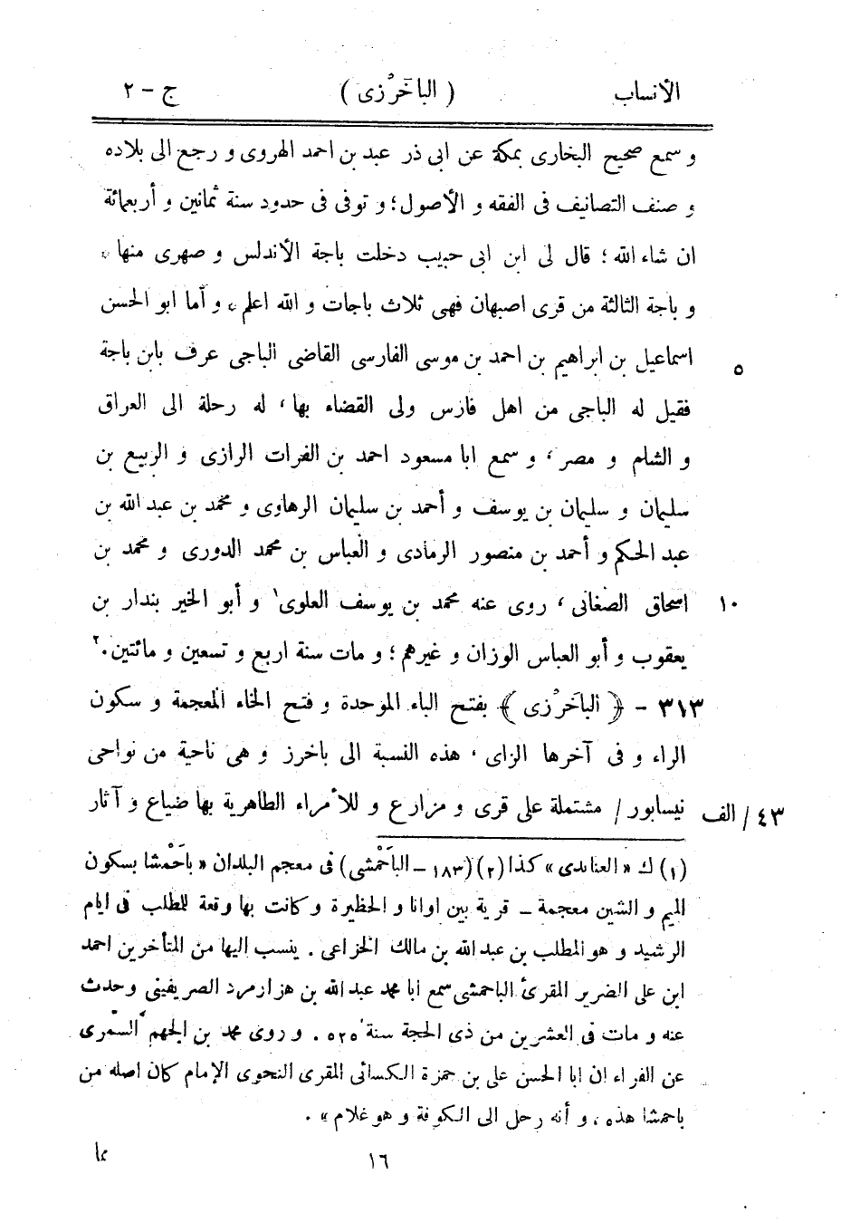 بفتح الباء الموحدة وفتح الخاء المعجمة وسكون الراء وفي آخرها الزاى، هذه النسبة الى باخرز وهي ناحية من نواحي 43/ ألف نيسابور/ مشتملة على قرى ومزارع وللأمراء الطاهرية بها ضياع وآثار