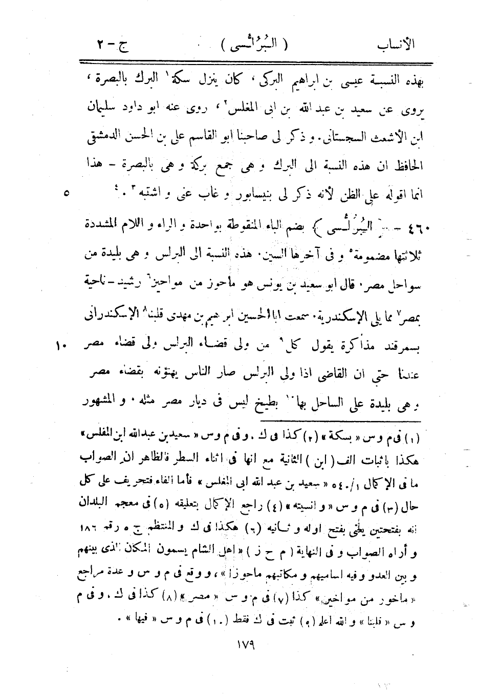 بضم الباء المنقوطة بواحدة والراء واللام المشددة ثلاثتها مضمومة [5] وفي آخرها السين، هذه النسبة الى البرلس وهي بليدة من سواحل مصر، قال ابو سعيد بن يونس هو ماحوز من مواحيز [6] رشيد- ناحية بمصر [7] مما يلي الإسكندرية. سمعت ابا الحسين إبراهيم بن مهدي قلبنا [8] الإسكندراني بسمرقند مذاكرة يقول كل [9] من ولى قضاء البرلس ولى قضاء مصر عندنا حتى ان القاضي إذا ولى البرلس صار الناس يهنئونه بقضاء مصر وهي بليدة على الساحل بها [10] بطيخ ليس في ديار مصر مثله، والمشهور