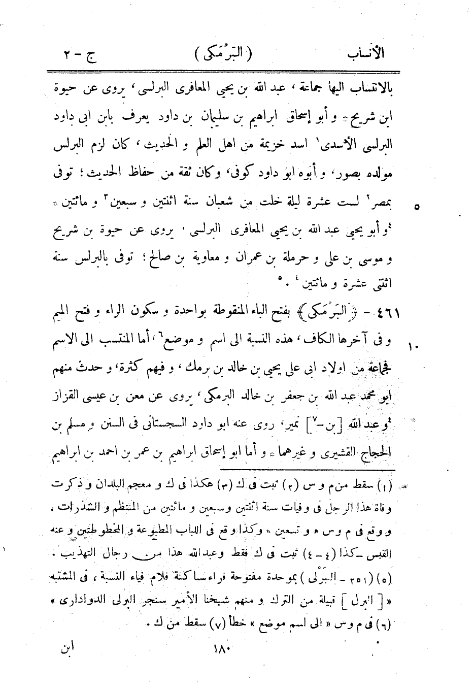 بفتح الباء المنقوطة بواحدة وسكون الراء وفتح الميم وفي آخرها الكاف، هذه النسبة الى اسم وموضع [6] ، أما المنتسب الى الاسم فجماعة من أولاد ابى على يحيى بن خالد بن برمك، وفيهم كثرة، وحدث منهم ابو محمد عبد الله بن جعفر بن خالد البرمكي، يروى عن معن بن عيسى القزاز [4] وعبد الله [بن-[7]] نمير، روى عنه ابو داود السجستاني في السنن ومسلم بن الحجاج القشيري وغيرهما وأما ابو إسحاق إبراهيم بن عمر بن احمد بن إبراهيم