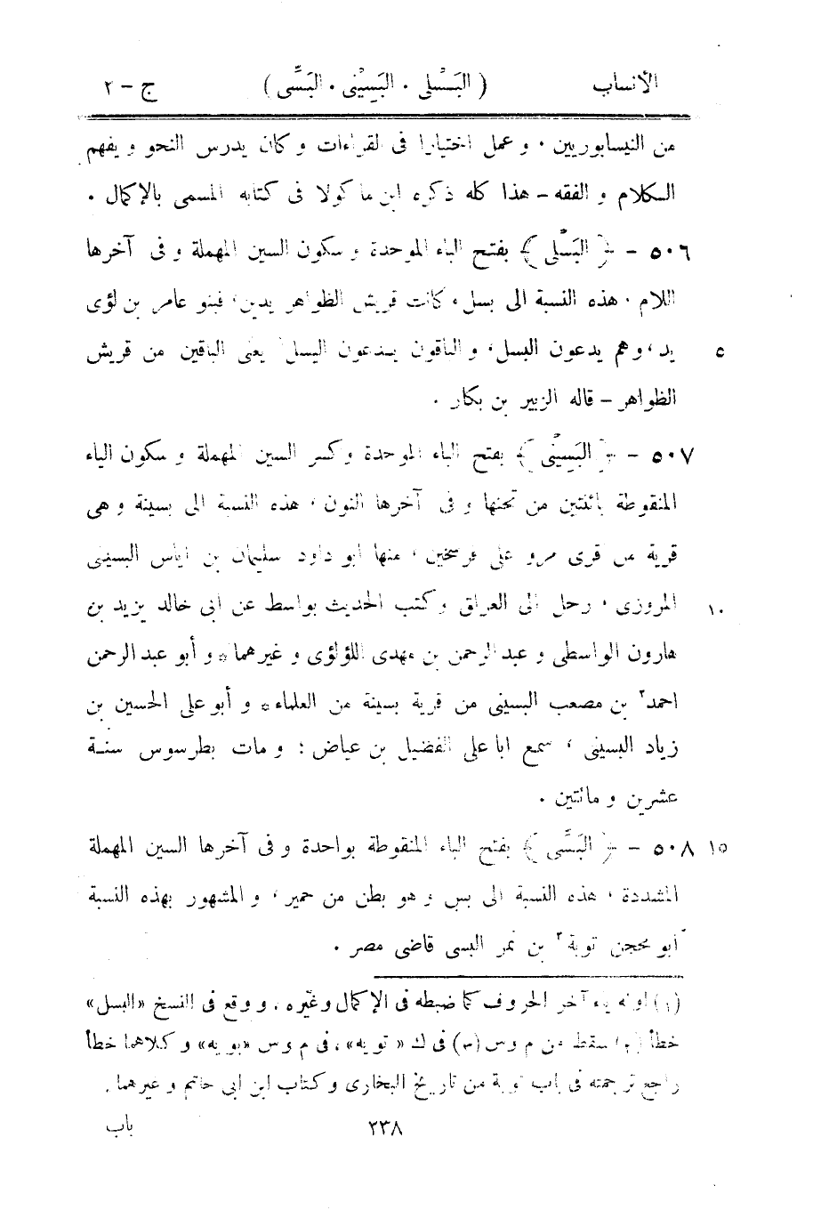 بفتح الباء المنقوطة بواحدة وفي آخرها السين المهملة المشددة، هذه النسبة الى بس وهو بطن من حمير، والمشهور بهذه النسبة ابو محجن توبة [3] بن نمر البسى قاضى مصر.