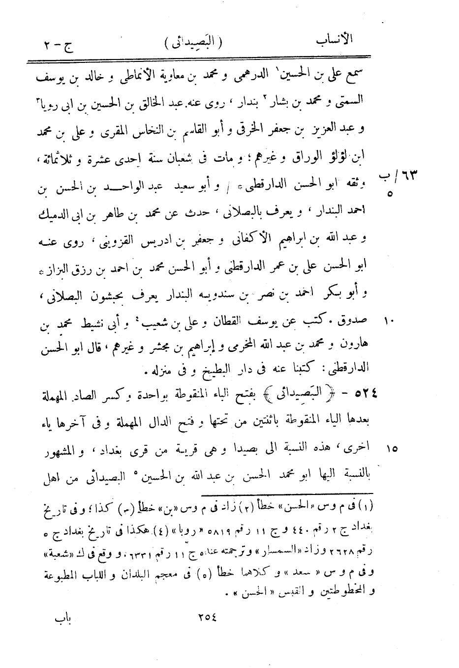 [4] هكذا في تاريخ بغداد ج 5 رقم 2628 وزاد «السمسار» وترجمته عنده ج 11 رقم 6331، ووقع في ك «شعبة» وفي م وس «سعد» وكلاهما خطأ